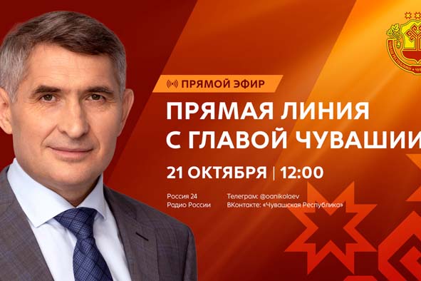 21 октября Глава Чувашии Олег Николаев проведет прямую линию с жителями республики. Начало в 12 часов.