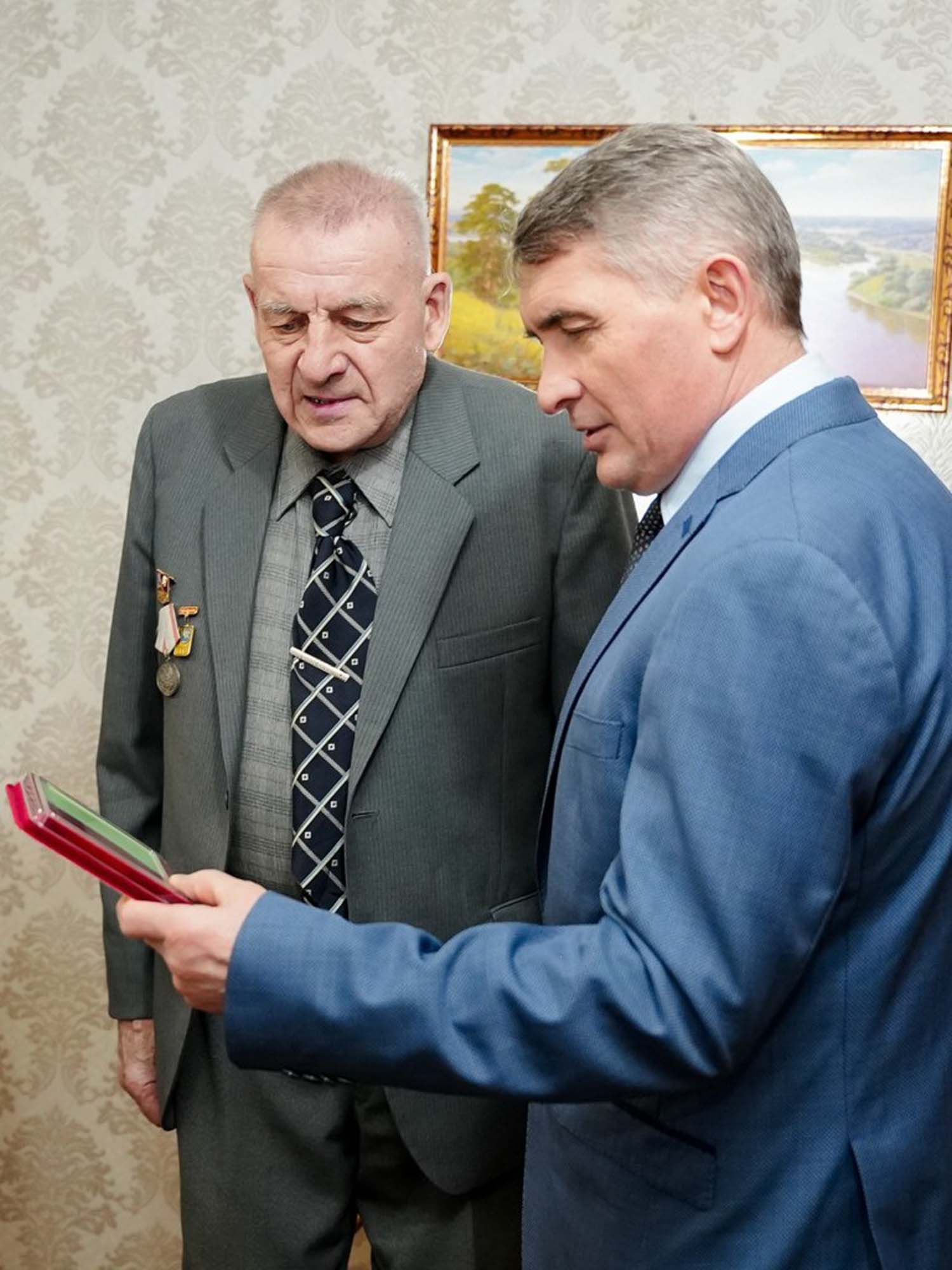 В День воинской славы России и 82-ю годовщину освобождения Ленинграда от фашистской блокады Глава Чувашской Республики Олег Николаев встретился с ветераном Великой Отечественной войны Владимиром Кожемяковым и вручил ему памятный знак «Житель блокадного Ленинграда».