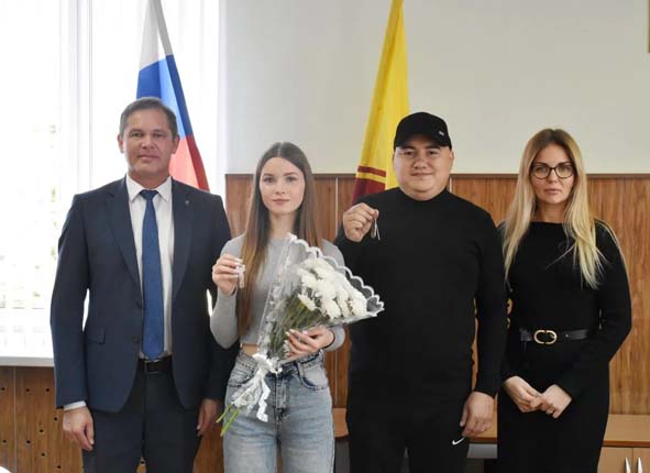 Патшалăх программипе килĕшÿллĕн муниципалитет пуçлăхĕ Алексей Людков тăлăх ачасен тата ашшĕ-амăшĕн хÿ-тлĕхĕсĕр тăрса юлнă ачасен категоринче шутланакан Александр Петрикова тата Наталья Александровăна савăнăçлă лару-тăрура хăтлă хваттерсен уççисене пачĕ.