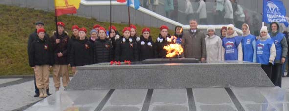В знак безмерной памяти и благодарности тем, кто в годы Великой Отечественной войны внес свой вклад в Победу, у подножия монумента, символизирующего подвиг народа, к Вечному огню были возложены алые гвоздики. Участники мероприятия минутой молчания почтили героев войны и тружеников тыла, они также положили цветы к гранитным стелам с изображением символики муниципальных и городских округов Чувашской Республики.