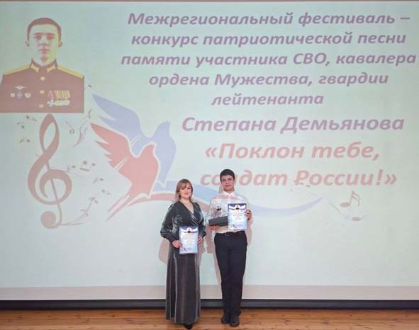 Ксения Моряшова и Данил Демьянов – победители межрегионального фестиваля-конкурса патриотической песни памяти участника СВО Степана Демьянова.