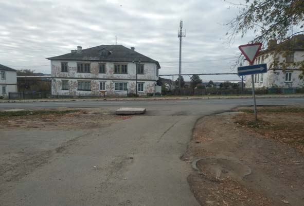 Выезд с территории рынка на улице Лобачевского в городе Козловке. Для информирования водителей надо установить знак «Поворот налево запрещён» и произвести ремонтные работы на поверхности траншеи, так как фундаментная плита создаёт опасность для автомобилистов.