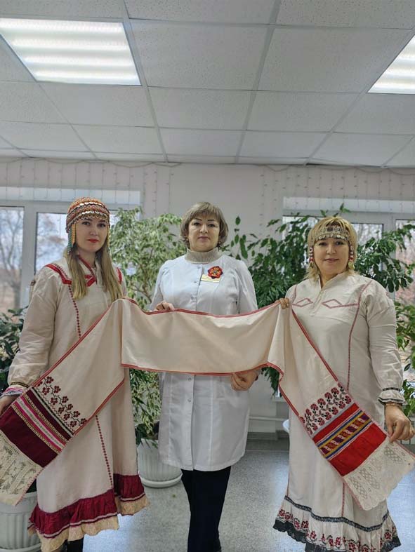 Çак чаплă уява халалласа Куславкка районĕнчи И. Е. Виноградов ячĕллĕ тĕп больницăра ĕçлекенсем хăйсен аллипе тĕрленĕ наци тумне, алшăллисене кăтартса пачĕç. «Тĕрĕре чăвашăн чунĕ тесе ахальтен каламаçĕ. Кашни эрешре хăйĕн асамлăхĕпе вăрттăнлăхĕ пур. Харпăр хăй аллипе тĕрлесе хатĕрленĕ наци тумĕ - чăннипех те илемлĕ. Вĕсенче пирĕн аннесемпе асаннесен, кукамайсен аллисен ăшши упранать, çавăнпа чылай çемьере тĕрленĕ япаласене ăруран ăрăва парнелесси йăлара»,- тет район больницин тĕп врачĕ Марина Макарова.